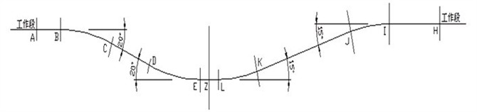 左 侧 右 侧 线段 线形 长度(m) 夹角和(度) 线段 线形 长度(m) 夹角和(度) AB 直线 0.645 --- HI 直线 3.123 --- BC 曲线 1.396 20 IJ 曲线 1.047 15 CD 直线 1.075 --- JK 直线 2.617 --- DE 曲线 1.396 20 KL 曲线 1.047 15 EZ 直线 0.044 --- LZ 直线 0.044 ---